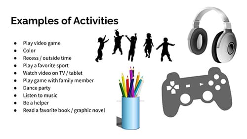 Here are examples of some activities that could be motivating or reinforcing for your student. Take a minute to review these ideas.